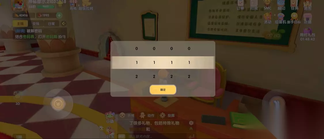 进入城堡后,记得仔细观察场景细节,密码线索就藏在城堡大厅里。骑士雕像对应密码第一个数字4,路灯数量是第二个数字4,桌面上小本子的字母M代表第三个数字6,而皇冠装饰则是最后一个数字3。输入正确密码后,任务就能顺利推进啦!如果发现剧情没触发,退出城堡重新进入试试。