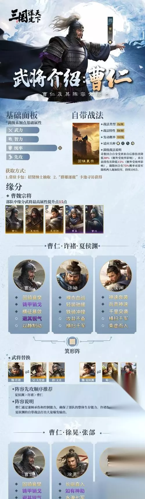 在战火纷飞的三国乱世中,曹仁作为一名英勇的将领,在战场上的表现至关重要。对于玩家而言,了解如何有效通过曹仁相关的关卡,不仅需要策略和技巧,更需要对游戏机制有深刻理解。究竟乱世三国中如何顺利通过曹仁的关卡呢?本篇文章将从多个角度深入分析,提供一系列策略和技巧,帮助玩家提升通关效率。 曹仁关卡概述 在介绍具体的通关策略之前,我们首先需要对曹仁这一角色有所了解。在乱世三国中,曹仁是魏国的重要将领,以其军事才能和忠诚著称。关卡设计往往围绕着其个人特点展开,如要求玩家具备良好的战斗规划能力、资源管理能力以及对敌人的分析判断能力。