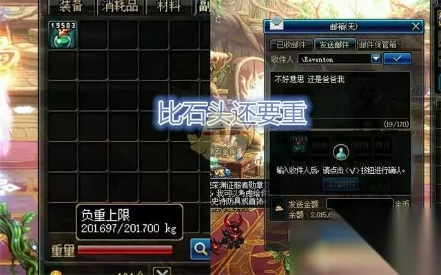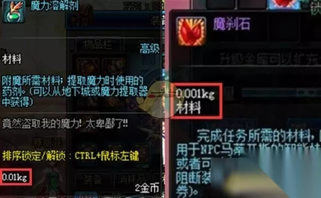 一个魔力溶解剂重0.01kg,10000个就能达到100kg的重量,这时一般玩家在穿了装备再放上BUFF换装之后基本就没有负重可用了。在游渝文化瓜皮君看来,魔力溶解剂这东西的重量设置应该是DNF中的BUG吧,策划在设计的时候应该是少摁了一个零。