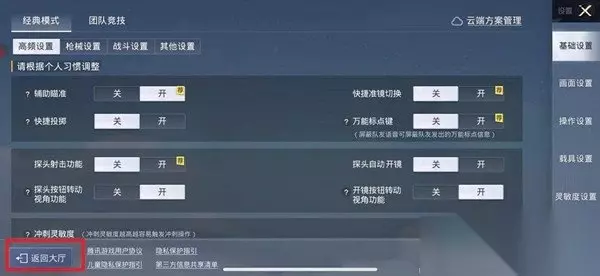 2、进入到设置页面,在左下角的位置点击返回大厅;