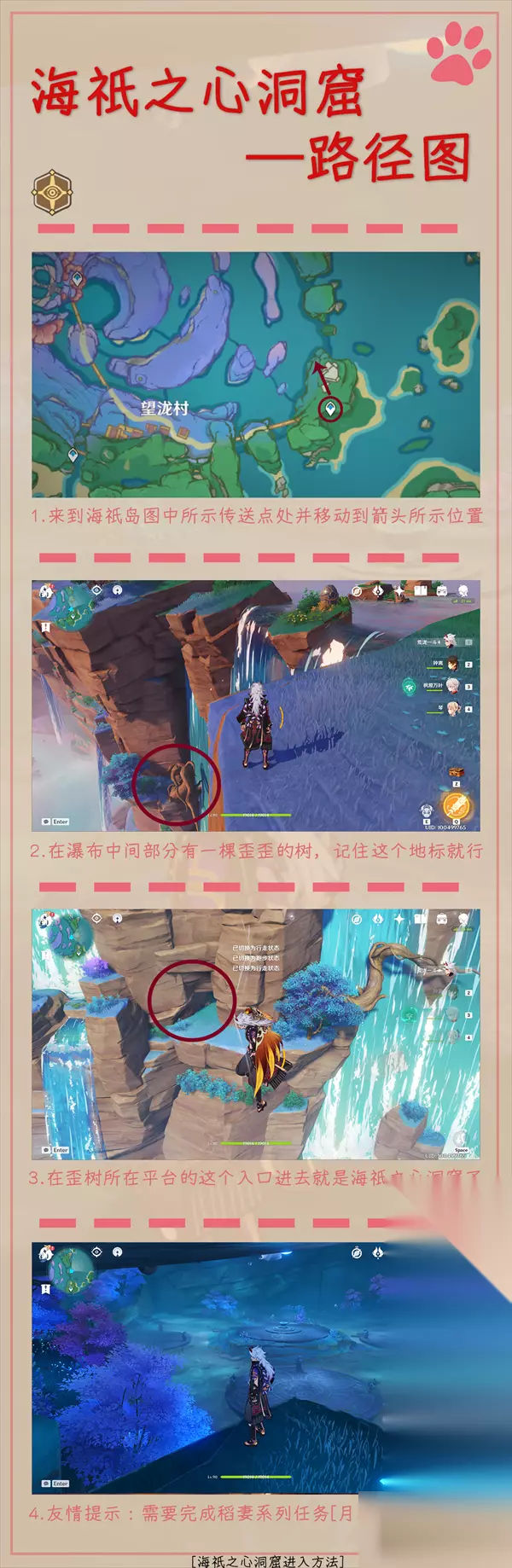 一处在海祇岛北部小岛上,一处在海祇之心洞窟 下面就是海祇之心洞窟入口的路劲图,大家可以参考
