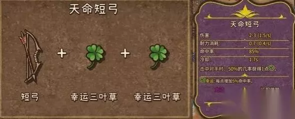 6、天命短弓(史诗,自然,远程武器):短弓+幸运三叶草+幸运三叶草