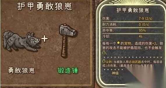 9、护甲勇敢狼崽(神级,宠物,近战武器):勇敢狼崽+锻造锤