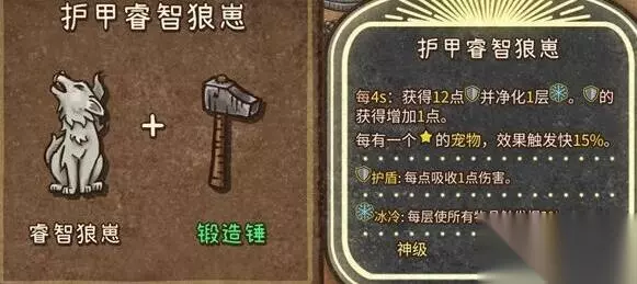 10、护甲睿智狼崽(神级,宠物):睿智狼崽+锻造锤