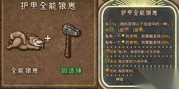 11、护甲全能狼崽(神级,宠物):全能狼崽+锻造锤