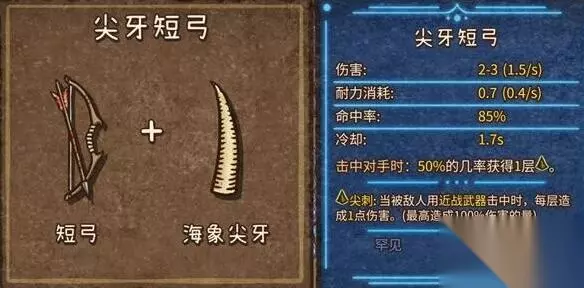 4、尖牙短弓(罕见,自然,远程武器):短弓+海象尖牙