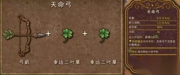 10、天命弓(传说,自然,远程武器):弓箭+幸运三叶草+幸运三叶草