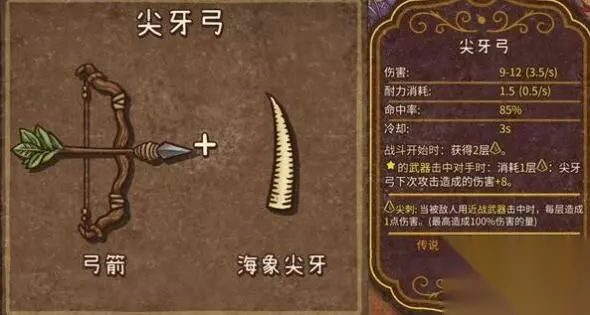 8、尖牙弓(传说,自然,远程武器):弓箭+海象尖牙