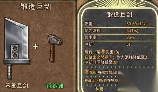 4、锻造巨剑(神级,近战武器):笨重巨剑+锻造锤