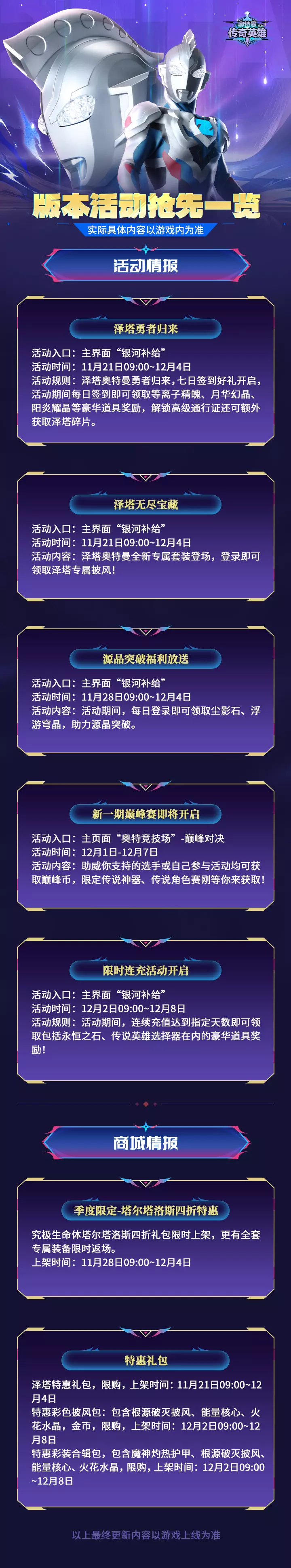 《奥特曼传奇英雄》版本活动抢先一览