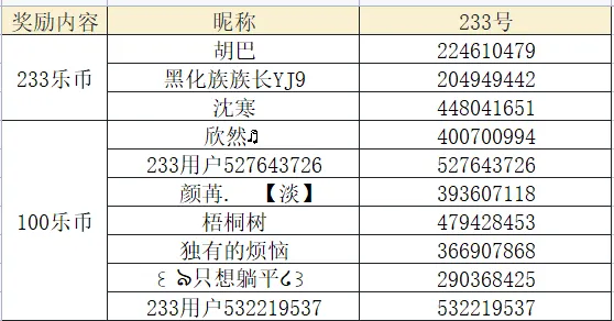 抽取3名送出:乐币*233