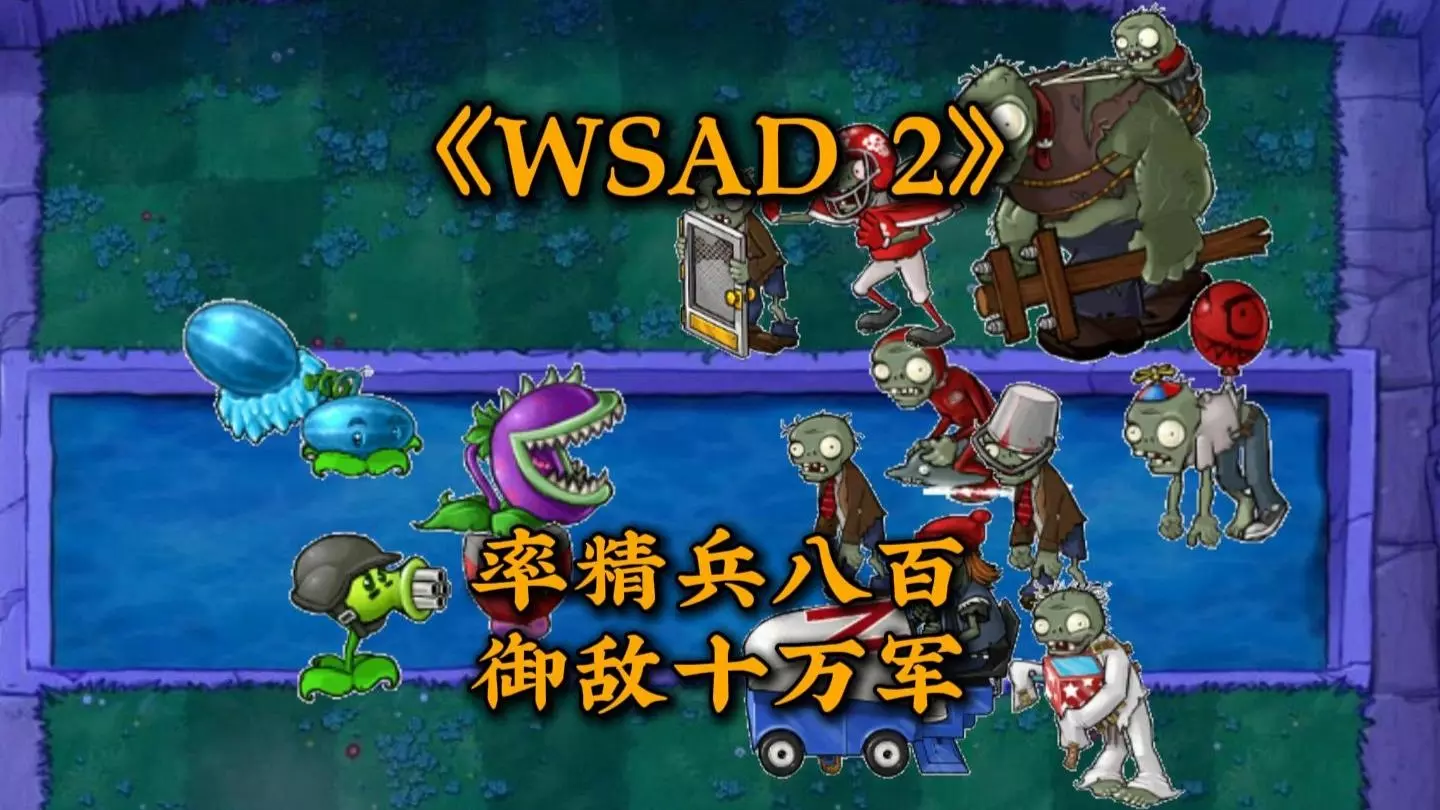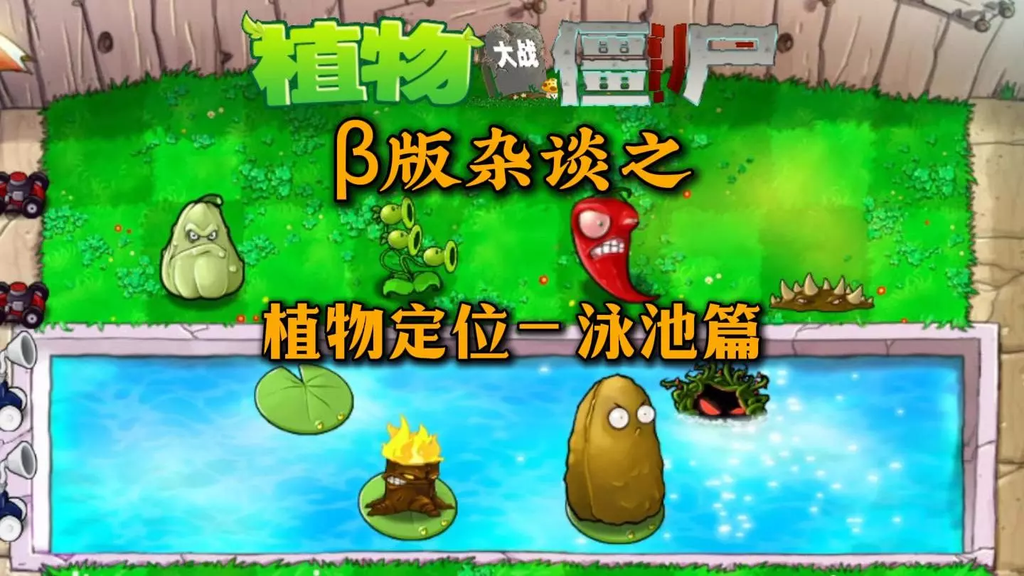 这是植物大战僵尸β版的《低调天》关卡,此关卡设定为僵尸离得越近植物越强大,大喷菇在结尾还能化身激光枪,玩家布置向日葵、南瓜头、火焰植物等抵御僵尸进攻,还有减速影响僵尸豌豆发射速度等特殊机制。