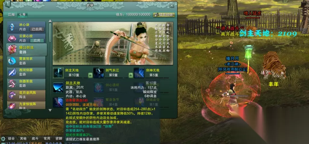 剑主天地:高伤害技能,由于受到阴性内功伤害加成,最终伤害相当可观,同时还能使敌人减速,结束增加2层剑舞。与玳弦急曲一样,属于基础输出技能,缺点是cd有6秒。