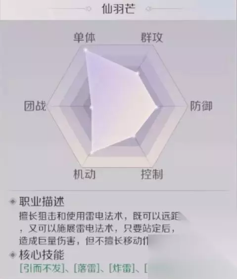 仙羽芒: 上手难度:☆☆☆ 加强了单体输出能力,之前单体输出就很强,现在加强单体输出能力,多个单体输出技能,可以造成定点的高伤。芒羽的仙化还是非常不错的,擅长狙击,造成很强的狙杀效果,还会释放雷电法术,可以造成巨额伤害,但是不擅长移动。