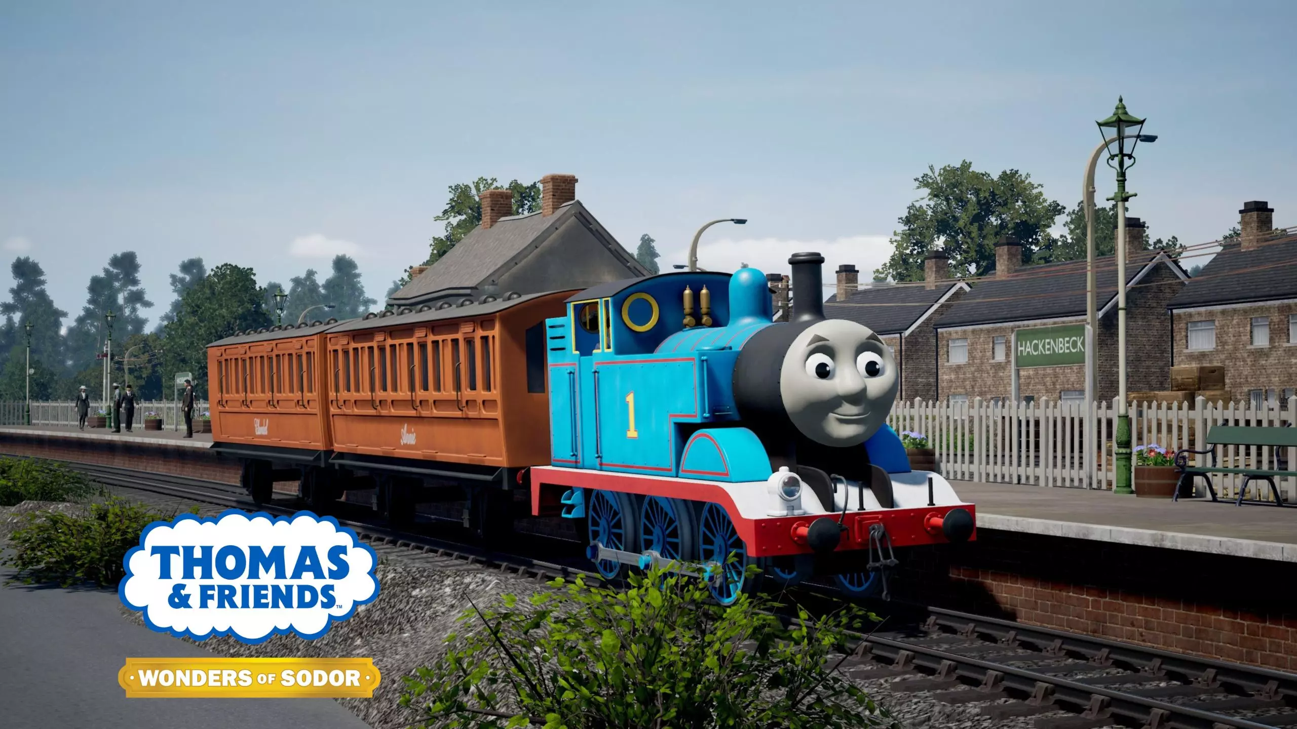 这是多多岛主题的火车模拟游戏内容,展示了火车高登执行客运任务的过程,画面呈现了高登在轨道行驶、停靠站点等场景,玩家可按时刻表操控高登完成运输工作。