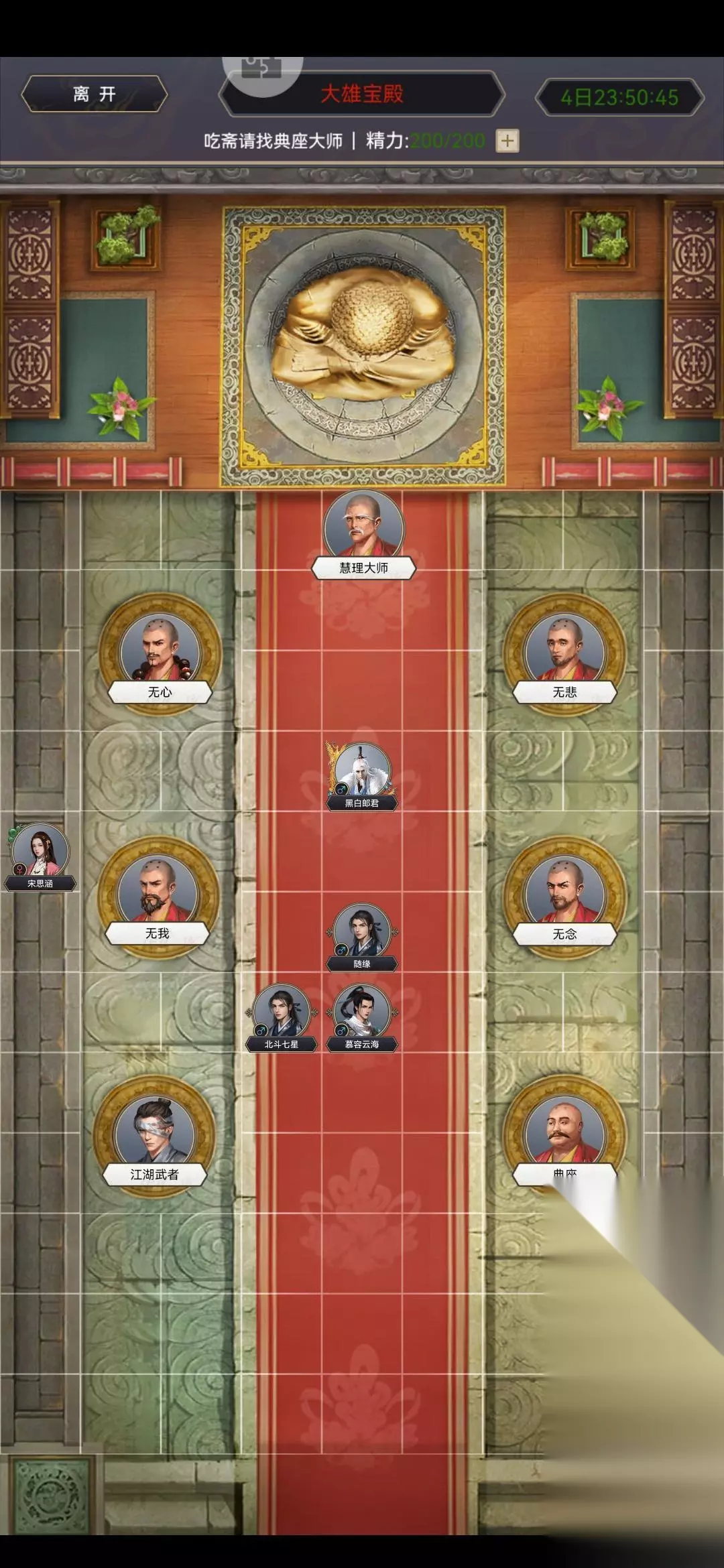 进来,右下角那个是答题增加气血的。应该都是12%,左下角那个是考你的记忆力的,首先先亮起几个穴位,然后让你凭借记忆去选择亮起的穴位,这个真不难,记忆第一个字就行,赢了能拿积分,然后就是上面那4个打架的伤害很高,有个甚至出手就打了我7万血?总之性价比很低,除非你能打的过。最上面那个是求签给玉佛的,免费3次,然后可以用玉壁求签,大概就是这样! 如上所述,这是关于如何参加无遮大会的详细介绍,如果能对更多朋友有所帮助,我们将会继续为大家带来精彩的游戏内容更新。