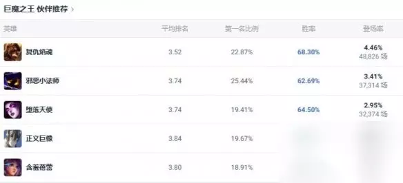 4、伙伴推荐 火男、小法师、莫甘娜、加里奥、莉莉娅