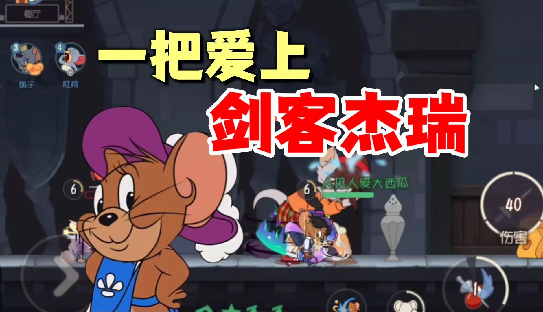 这是《猫和老鼠手游》的游戏实录,展示了玩家使用剑客杰瑞进行游戏的过程,玩家表示剑客杰瑞很容易拿到SSS评价,画面呈现了搬运奶酪等游戏环节。