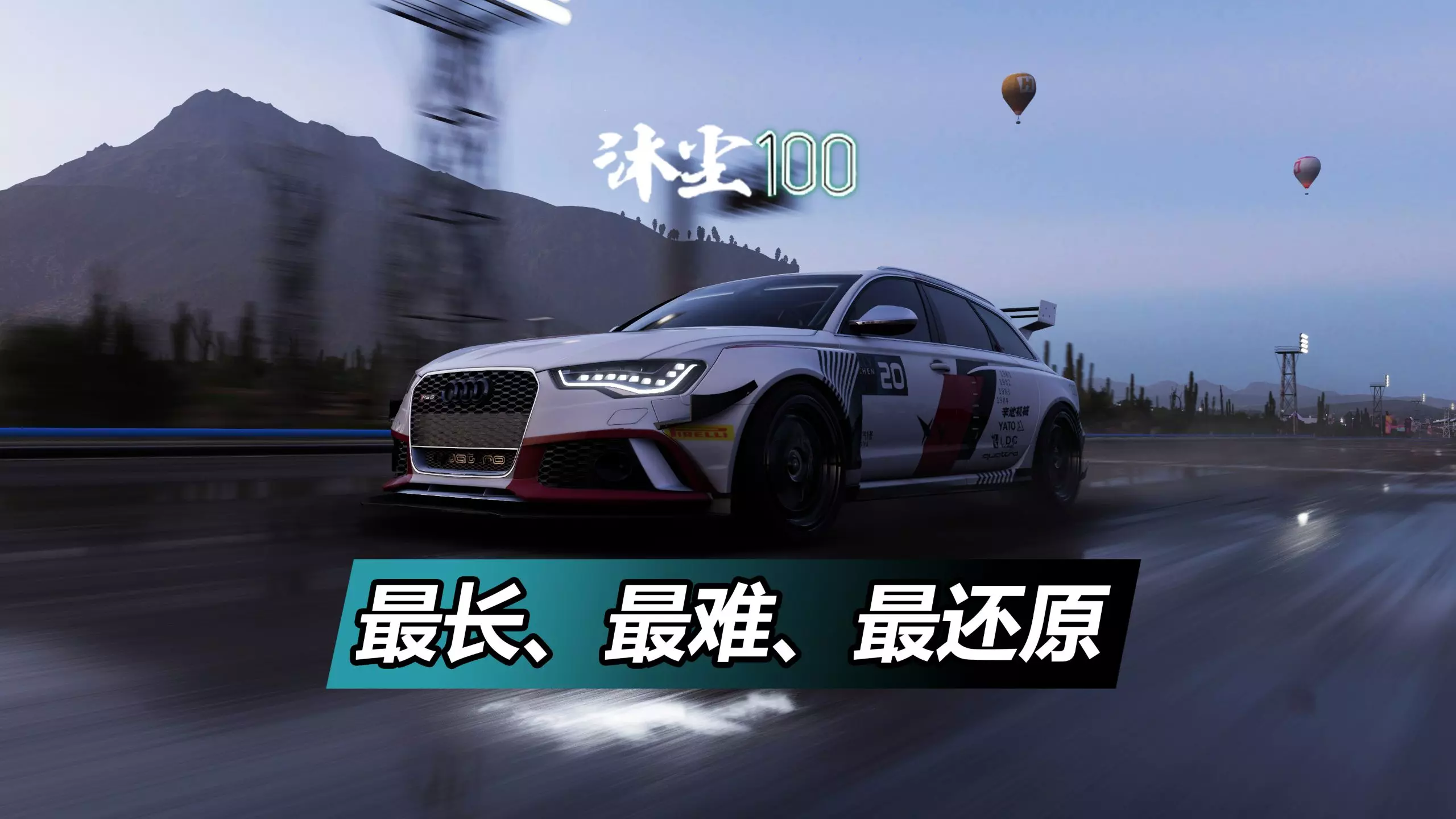 这是《极限竞速:地平线5》的“沐尘100北线”赛事内容,展示了驾驶2015款奥迪RS6 AVANT在不同路况赛道疾驰的过程,过程中达成终极极速、干净利落跑法等技术成就获取经验值。
