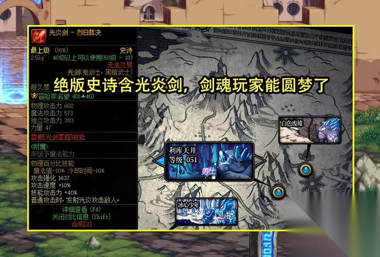而对于绝版粉装、圣物,绝版史诗的加入,势必会引起很多玩家开始刷低级白图,以后有疲劳没有事情干,肯定会去刷自己想要的装备。 值得注意的是,每个地区获得的领主粉、圣物、绝版史诗都是不同的。如果玩家想要刷光炎剑,只有在雪山这个区域才有概率获得。 如果玩家想要刷的装备,却不知道在哪里刷,可以通过百科词典查询装备的等级,然后在对应大致等级的区域刷,例如60级的冰龙太在61~67的海上列车出。