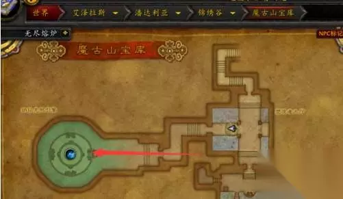 4、现在的装等刷这个本简单的很。就是需要注意先王之魂迅弓速不台,别被他的箭雨射中,移动攻击,最快速度击杀。最后到达伊拉贡所在区域,如图所示路线。