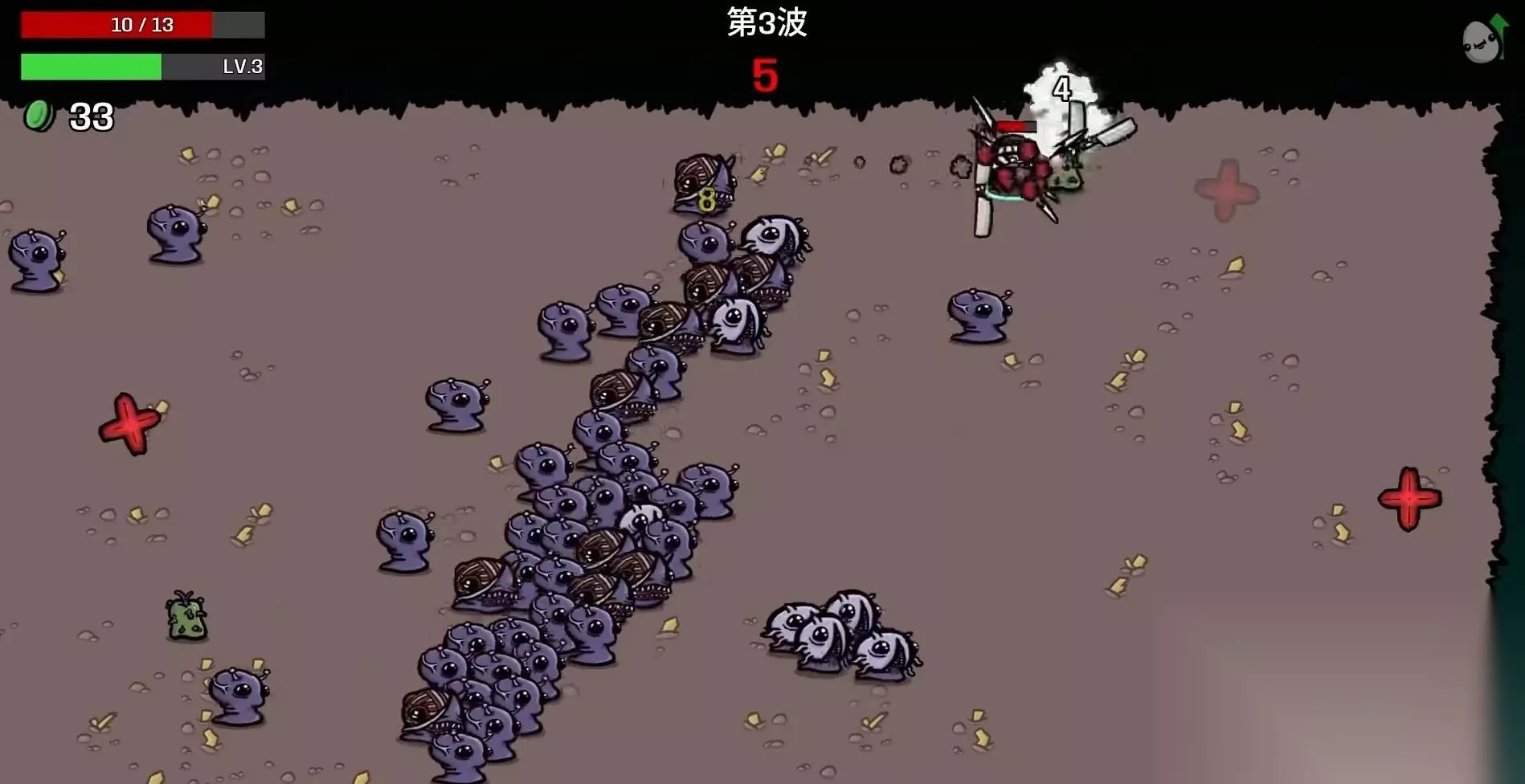 但是,因为探险者造成的伤害也不是很高,所以基本不会让去以高损害来迎战boss,关键还是用它移动速度换得损害。值得一提的是,玩家要将探险者造成的伤害维持在90上下那样,护盾之类的还是得多拿点,促使探险者可以求生的久一点。