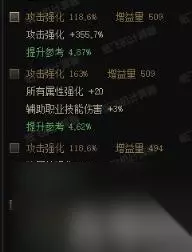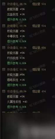 防具部位比较通用的词条是改版前的“连击增加攻击强化减少防御”,改版后变为直接“增加攻击强化”。这个词条是通用词条里最强的词条,大部分情况下都是最优选。20全属强的词条差一点点,这两个词条度可以算是毕业词条,差距很小。 再往下是20单属强,和18全属强词条。这两个词条的强度会比前面两个弱0.5%以上,但是也可以作为3.8词条装备看待。