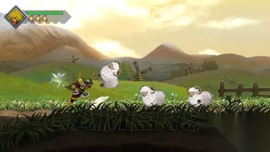 step1.沿路上会遇到一些木牌,它们会教玩家如何去进行操作。 路上还会遇到水立方的怪物、松鼠和飞虫,轻松一挥刀就可以解决它们。 随后可以打破木桶获得补给,以及推动箱子作为垫脚物跳到右侧上层。