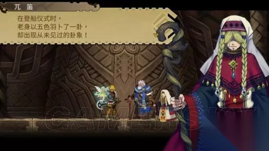 step11.第二天,屋外出来了掠夺者歌曲,瓦因才醒来,在毛毛的劝说地下终于愿意去到祭典大道送妹妹一程。 当奈儿、创赛亚一行人启程后就进入到祈神庙内见长老和兀笛,他们要求瓦因之后去调查长角之森的石阵。