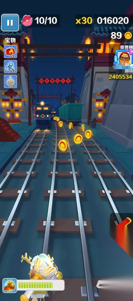 三、注意留心车厢尾部 游戏里大家是有视野盲区的,而发光的字母也往往会出现在盲区中,其中频率最高的就是火车的车厢尾部,因为角度问题刷新到尾部后面的字母如果不控制人物触碰很难收集到,在遇到比较多车厢障碍的位置大家要多留心障碍物尾部有没有发光,也可以下意识地控制人物扫一下车厢尾部,说不定就能收集到没有看到的字母。