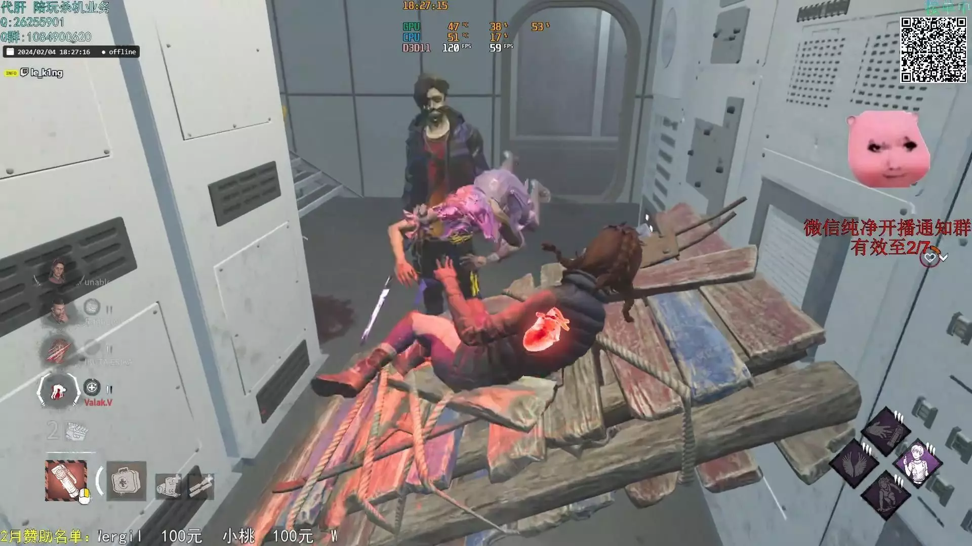 这是《黎明杀机》的近期对局片段分享,展示了游戏内雪地场景的逃生玩法,还附带了代肝陪玩业务联系方式,以及开播通知群信息,能让玩家直观看到人皇的对局操作。