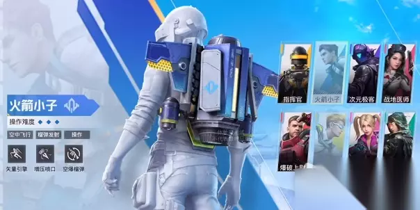 火箭小子技能介绍 【被动技能:矢量引擎】 在空中点击跳跃可以向前冲刺,长按可实现空中自由飞行和转向。 【主动技能:增压喷口】 使用技能后获得向上的冲力,可快速飞跃至高空。 【终极技能:空爆榴弹】 使用后掏出空爆榴弹发射器,限定时间内可无限使用。