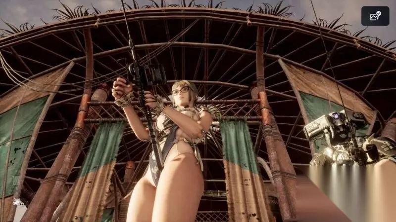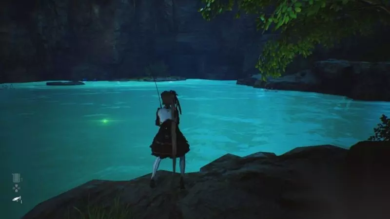 另外在沙盒地图中跑动一段时间后会进入疾驰模式,这是减少玩家跑路时间的便利设计。然而由于游戏中的敌人密度不低,而被敌人察觉到疾驰模式就会打断,突然慢下来的速度又不得不让玩家回过头去应对敌人,这反倒拉长了跑路时间。 被察觉后玩家是无法进行任何互动的,我好不容易过了一段建筑物跳跳乐,到了最终的宝箱面前,却发现因为建筑外一只不能动的触手进入了察觉状态,眼前的奖励怎么都拿不到时,我又不得不跳下去解决触手,然后重新跳一遍的烦躁感就随之而来了。 如果你想打白金,那么散落在世界各地的文件与易拉罐就必不可缺。其实这算是我喜欢的收集要素,各种文件很好的补全了世界观与角色设定,易拉罐对于我这种饮料爱好者来说,69种看起来很可口的饮料,以及收集时伊芙会摆出的酷炫姿势也很对我的胃口。 在刚开始收集这些的时候是相当具有满足感的,可一旦到了收集末期就完全不一样了。文件和易拉罐没有任何的线索引导,其本身在游戏中看上去也只是个地上不起眼的小光点而已。 在线性关卡中无非就是让我重新再顺着路线检查一遍而已,顶多算是一种轻度折磨。而在沙盒关卡中找那么几个小光点,那简直就是犹如大海捞针般的顶级折磨了。 那如果进二周目,以顺便的方式再收集这些剩下的东西又如何呢?这也不行,因为游戏根本就没有二周目一说。你通关之后什么都不能带走,游戏只是给你新增了一个困难难度,无论如何都必须从零开始游玩。 而如果你没有事先备份存档的话,游戏通关后给的最后一个存档也会放在不能自由行动的最终BOSS房门口,后悔药都没得吃。 很难想象这种问题会在一款本世代最新的动作游戏中出现,SHIFT UP可能完全没有考虑到玩家的收集体验。 此外还有游戏中的钓鱼要素,钓鱼的全收集不难,甚至这个系统会奖励一个游戏中我认为最色的服装,但是钓鱼的操作很令人不解。 在鱼上钩之后,玩家需要连按方块键来消耗鱼的力气,连按最少30秒简直就是手指锻炼。不仅如此,还需要趁着鱼在疲惫的时候,通过自适应扳机来收杆,你得非常精准的将手指按压力度保持在不停变化的指定位置。 即使是你的手很稳,并且对于力度的掌握也很到位,手柄也会通过不断的高频震动来影响你的按压精度,钓巨型鱼时那个难度简直令人发指。 好在最后我还是找了减少受苦的方法,那就是进入辅助设置之中将钓鱼辅助给打开。钓鱼操作瞬间变成了按住方块和按住扳机键即可,体验跟着正常了许多,我觉得把这当成钓鱼的默认操作才对。