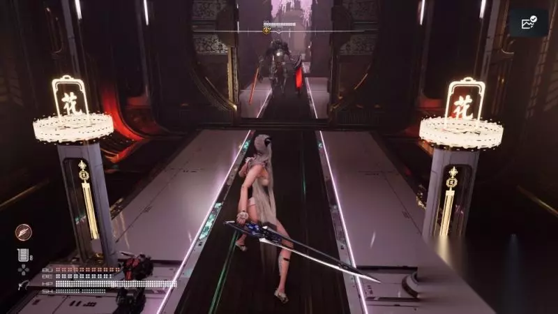 类似于这样的支线要素有不少,面对游戏所抛出的一个个谜面,自己随着一步步探索挖掘谜底的过程相当好玩。整个流程具有如此之高的完成度,并且还能保持住游戏的整体节奏,这对于SHIFT UP来说是难能可贵的,的确出乎我的意料了 另外我还非常想夸赞一下本作的音乐设计,我在发售前的采访中问过金亨泰,《尼尔》音乐团队MONACA对《剑星》的参与程度。金亨泰回答的是20%,冈部启一并未直接参与本作编曲,其原因就是为了避免和《尼尔》配乐过于相似。 游戏中的确有几首曲子风格很接近,但更多的音乐是更符合《剑星》的流行风格,不同的语言夹杂虚构语言穿插其中,每一首都特别抓耳。 优秀的音乐成功去除了探索时跑路空白时间的无聊感,如果本作会推出OST的话,那绝对是值得入手的。 断腿然后接腿 《剑星》有着惊喜之处,但糟心的地方也不少,像我之前在试玩报告中就已经吐槽过的战斗系统,游戏的战斗动作打磨得很好,可手感与打击感都偏软,而其动作设计又偏硬。 SHIFT UP显然是想在创造一个具有爽快感的快节奏战斗同时,又去讲究各方面的真实感。两边的相性并不好,最终导致了玩家们在试玩版中感受到的输入延迟和过高的硬直,可惜的是这些在正式版中并未改进。 另一个我提到的问题就是连招的方式并不多,不过当时试玩版还藏了两个技能树,我还无法下定论。而现在我可以告诉大家的是,试玩版中你们所玩到的连招就已经是全部了。 另外两个技能树一个是爆发技能,一个是迅驰技能,我一个个来说。 爆发技能相当于进阶版的贝塔技能,解锁后会在蓝色贝塔技能槽上多一个红色爆发技能槽。爆发技能共有4种,其威力比贝塔技能要强一点,适合用来作为连段的收尾。 爆发技能槽需要通过精准闪避,或是通过蓄力攻击消耗贝塔技能槽转换过去。这在一定程度上对连招思路产生了改变,并且使得压制敌人能更得心应手,更高的输出效率又鼓励玩家通过精准格挡、闪避去取代技能复读。