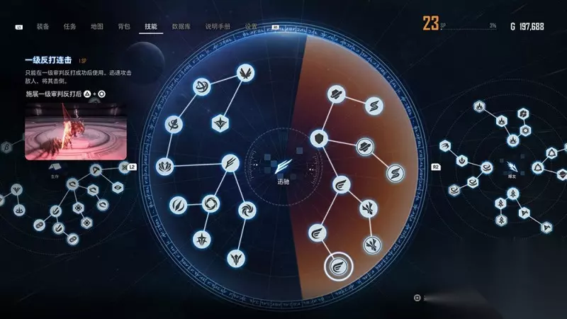 再来说迅驰技能,这比爆发技能解锁得还要晚,差了一大段流程才能拿到。整个技能树也比较敷衍,无非就是迅驰技能槽的增长、消耗速度,以及迅驰状态下的精准格挡与闪避功能。 迅驰技能的机制可以看作是“九十九武器”,进入迅驰状态全面提升能力,血条也会被迅驰槽所替代。听上去很强,但其实你根本想不起来去用它。 因为你在压制连击的时候,爆发技能已经足够强悍,它甚至能压到BOSS起不了身,没有必要用迅驰技能。而在被BOSS压制的时候,巨高的硬直无法用迅驰技能来取消,保命的作用也等于没有,这使得迅驰技能的定位非常尴尬。 以上这些问题我依然可以用我在试玩报告写过的话来评价,那就是“这些都是没有必要的设计”。