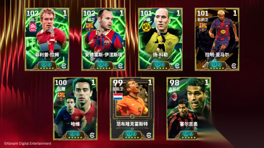 — 天降幸运 高光 特级经纪人 (兑换保底) — 双增能史诗高光扬·科勒将通过【天降幸运 高光 特级经纪人(兑换保底)】首次登场!除此之外,你还将有机会获得双增能史诗高光亚马尔、拉姆、伊涅斯塔、哈维、范布隆克霍斯特、塞尔吉奥。想要补强球队的玩家们,千万不要错过此次活动!