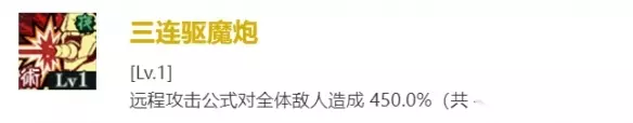 【必须杀】 连续三门驱魔炮 远程攻击公式对全体敌人造成450.0%(共4次命中)伤害。