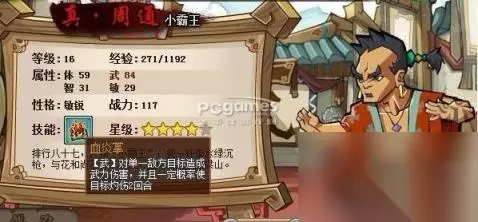 曹正,屠夫,技能蓄力,辅助型技能,效果提高自身攻击力150%持续2回合。 因为曹正技能使用后休息一回合,也就是本回合不会出击,所以阵型使用飞龙阵, 把2娘放单独放最前面,曹正在周通后面。曹正性格深沉,防御略低。 本人实验过,一般2娘第一回合首先给后面的加,所以放后面是有好处的。 这个组合功,速,防,皆备。综合指数***** 二、最佳PK血盾英雄组合:焦挺+李定+周通(施恩、大虫) 焦挺 血厚,其他低下。 李定 单法前期很BT 周通 攻击高手,人称小霸王。 阵型 天覆阵。焦挺打前阵,霸王中间,李定殿后。 该组合血盾型,所谓防中有功,霸气轻易不外泄综合指数***** 三、最佳副本英雄组合:周通+李定+曹正(王定六、蔡庆) 这个组合不用多说了,要功有功要法也有法。 下副本是再好不过的组合了。实用。 如果下副本还带个2娘那就太OUT了,2娘等于半个残废。 而且速度上也会慢很多,效率不如纯攻击组合。 该组合可以使你效率副本,综合指数***** 小小个人建议,本文所提只是策略,主要还是通过装备强化,英雄等级所影响。如果强化等级够高,英雄等级够高,效果会更明显。