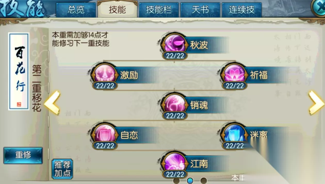副本环境下合欢需注重技能循环的连贯性,起手建议使用增益类技能如决绝和激励提升攻击力,随后衔接缠绵江南等高伤害技能。控制技能秋波在应对特殊机制时具有战略价值,但常规清怪阶段可减少使用频率。被动技能忘忧祈福能显著提升续航能力,在长时间副本战斗中不可或缺。属性加点推荐敏血或力血平衡型,确保输出的同时避免被秒杀。