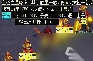 22、找穿山大王(穿山大王府 46.54),进入战斗,前排血量、伤害一般,后排都略高,抗性一般。 打法:封LB、WZ,逐一击杀前排、SM、以及其他怪物。