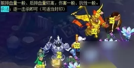 9、人参果树战斗中怪物血量、伤害略高,抗性一般,封一两个LB,杀其他LB后逐一击杀。