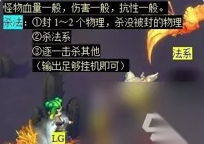 机关兽战斗:怪物血量、伤害、抗性都一般,封LB、DT,物理杀MW,法系杀。