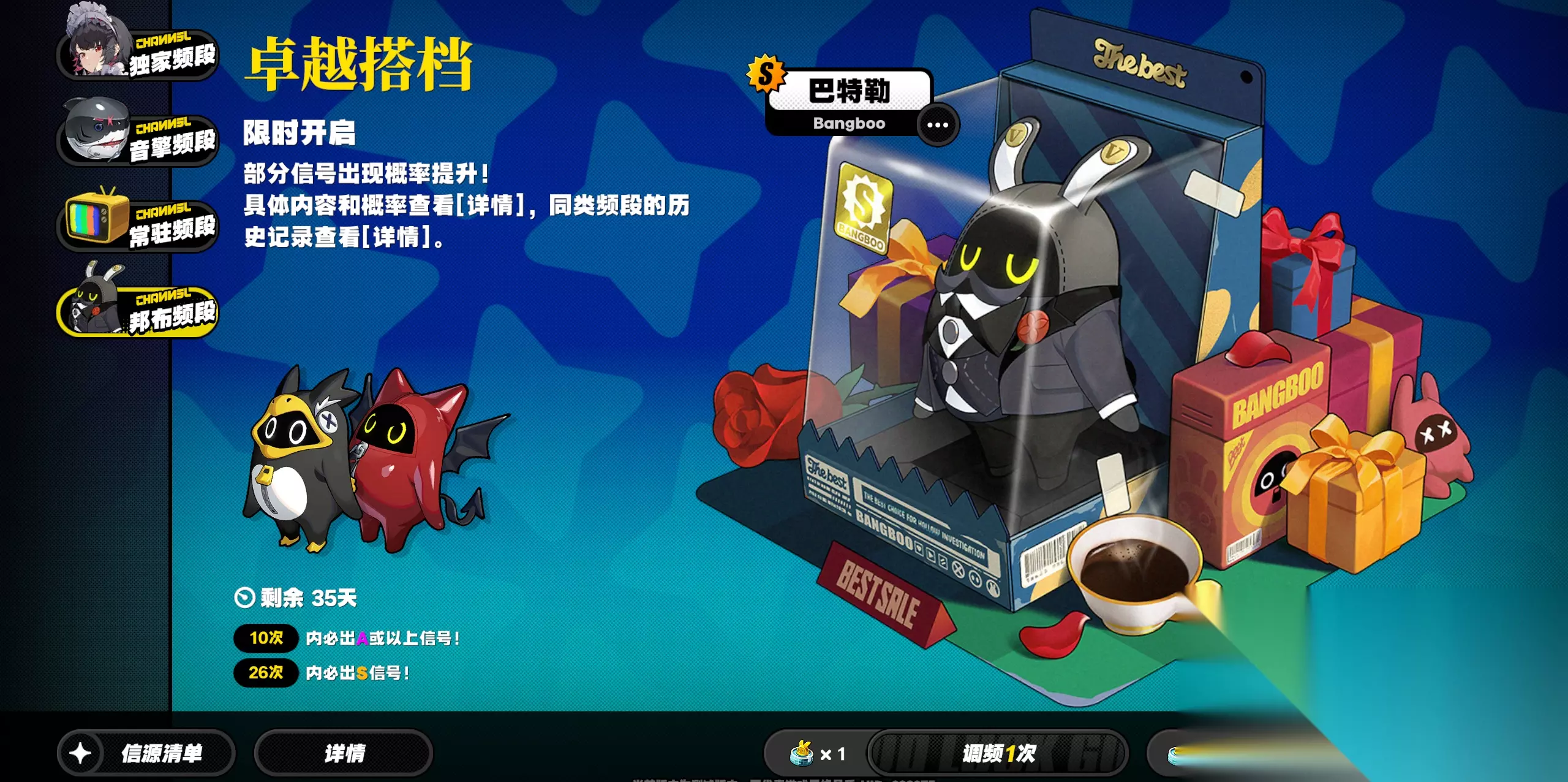 (4)最后就是邦布池,抽卡所需的嗯呢券可以通过活动,肉鸽玩法之类的获得,但无法通过氪金等获得