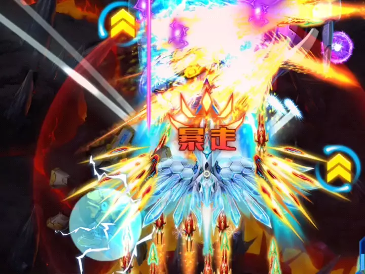 这是一款飞行射击游戏的游玩展示,玩家将高能爆弹伤害叠至920%,接近950%,此伤害足以秒杀Boss一管血,画面呈现了战机攻击炼狱魔神等Boss、推进至不同波次的战斗场景,还展示了增益选择界面。