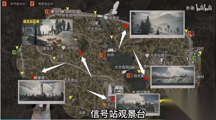 【北山地图】 同样五个照片地点,分别在瞭望塔、北山战、信号塔、逃生艇附件、观景台附件,具体如下图所示位置。