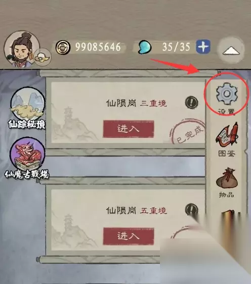 兑换码使用方法: 1、玩家进入到游戏中之后,会看到在右上角有一个向下的箭头,然后进行点击。