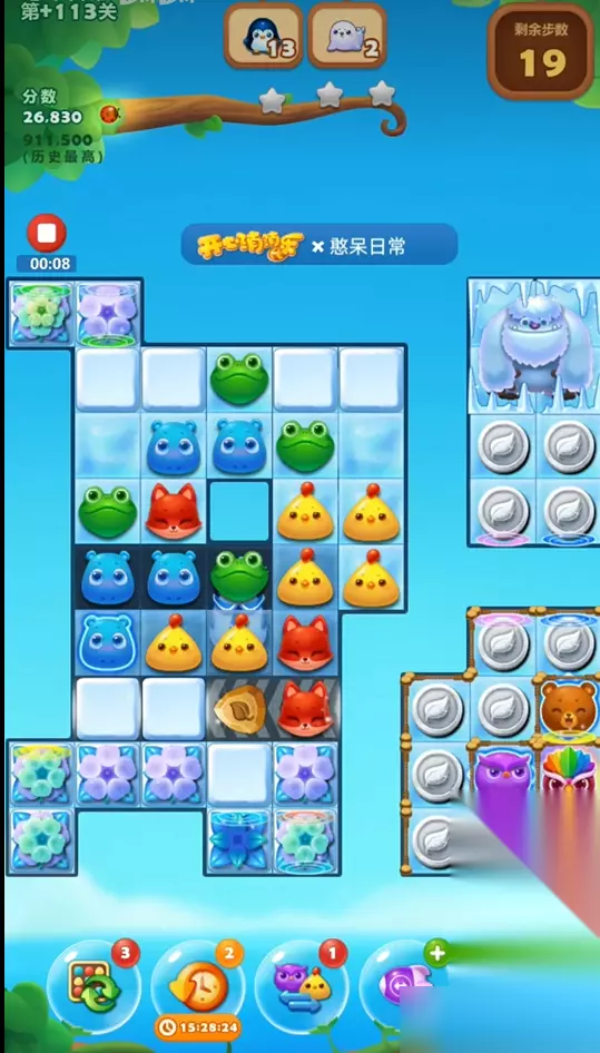 面对复杂关卡时别急着动手,先花几秒观察整体布局。重点看冰块、藤蔓等障碍物的分布,找到最容易突破的区域。如果遇到多层障碍,可以先用普通消除打开通道,再把特效留到后期集中爆发。遇到角落难消的冰块不妨试试用爆炸特效或魔力鸟解决,有时候耐心等待动物自然下落也能凑出意外惊喜。记住每关的目标是收集物品还是消除障碍,别光顾着消得爽而跑偏啦。 连击和连锁反应是拿高分的关键技巧。普通三消虽然也能过关,但多连击才能激发分数加成。可以刻意制造L型或T型布局来生成爆炸特效,或者用魔力鸟配合其他特效制造全屏清场。有时候看似普通的移动会引发意想不到的连锁反应,所以每步都要想想后续两三步的可能性。剩最后几步时如果差一点过关,不妨赌个连击机会,说不定就逆风翻盘。