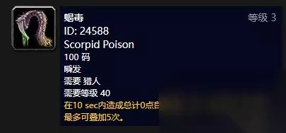 含毒喷溅 可学宠物:蛇、蜘蛛 获取位置:祖尔格拉布(拉扎什蛇)、影月谷(库斯卡眼镜蛇)