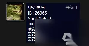 甲壳护盾 可学宠物:龟 获取位置:黑暗深渊(阿库麦尔食鱼龟、加摩拉)、希尔斯布莱德(钳嘴龟、暴躁的本希)、辛特兰(铁背龟)、哀嚎痛苦(克雷什)