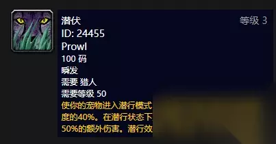 潜伏 可学宠物:猫科 获取位置:荆棘谷(丛林猎豹)、冬泉谷(霜刃捕食者)、祖尔格拉布(祖利安雌猎虎)